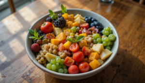 To start your day, have yogurt with fresh fruits. Alternatively, oatmeal with nuts is an excellent choice, as it provides energy and essential nutrients that help your skin stay healthy and glowing.